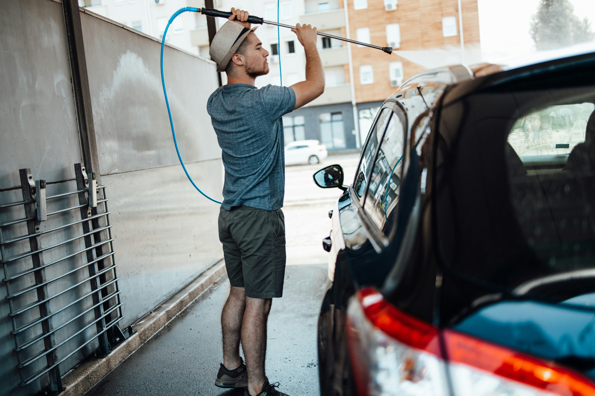 Til almindelige opgaver som bilvask og havemøbler er 100–130 bar tilstrækkeligt. Til fliser, murværk og facader kan du med fordel vælge en model på 150–180 bar for et mere effektivt resultat.